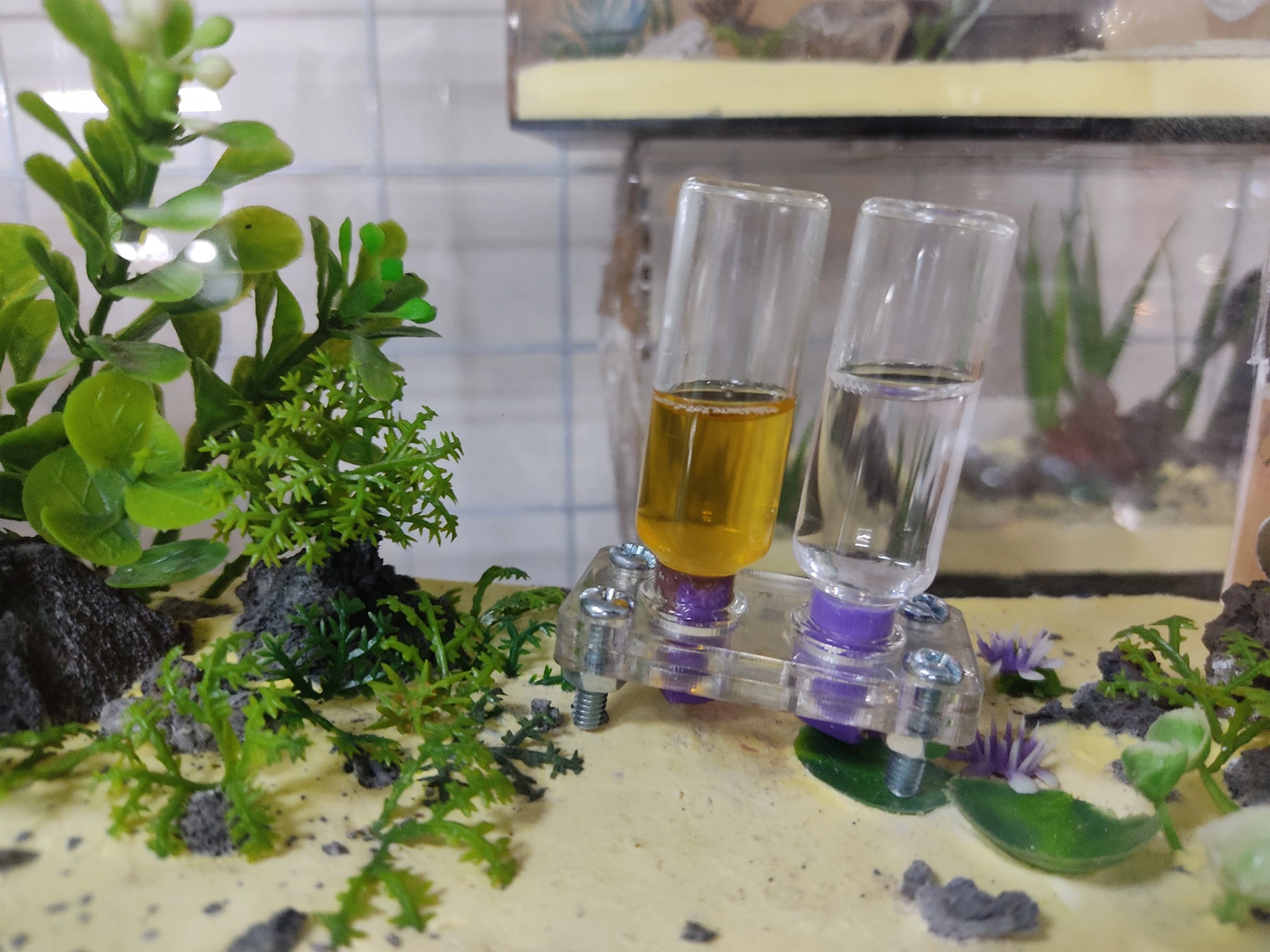 Anh Nhựt cho biết, nuôi kiến cảnh khá nhàn, ít tốn thời gian, không gian và chi phí. Anh chỉ cần bố trí một tháp nước và đường (dụng cụ cho kiến ăn tiện lợi và sạch sẽ nhất), thay một tuần/lần.